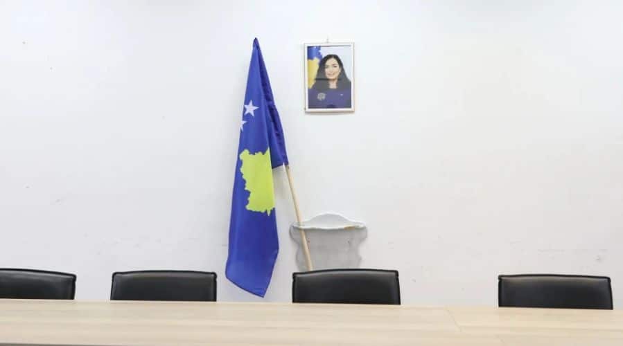 Ndërrimi i pushtetit në veri – Flamujt e fotografia e presidentes në sallat e kuvendeve