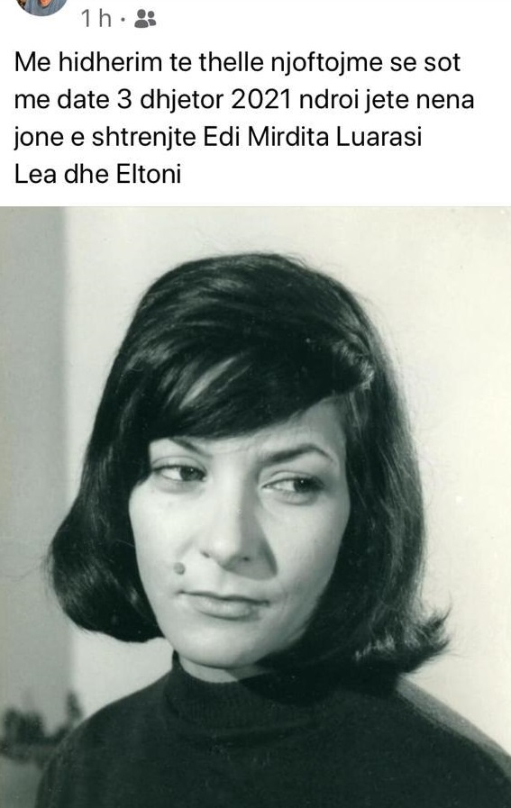Këtë pasditje ka ndërruar jetë një nga aktoret më me emër të periudhës së Kinostudios dhe Teatrit Shqiptar, Edi Luarasi. Ajo u nda nga jeta në moshën 81 vjeçare. Lajmin e bëri të ditur i biri i saj Elton Luarasi në një postim në rrjetin social facebook.