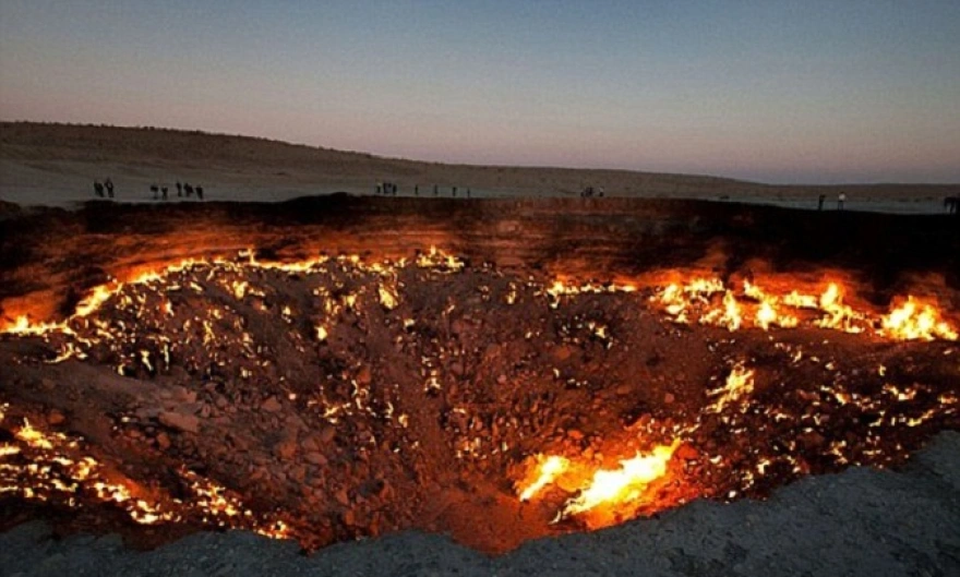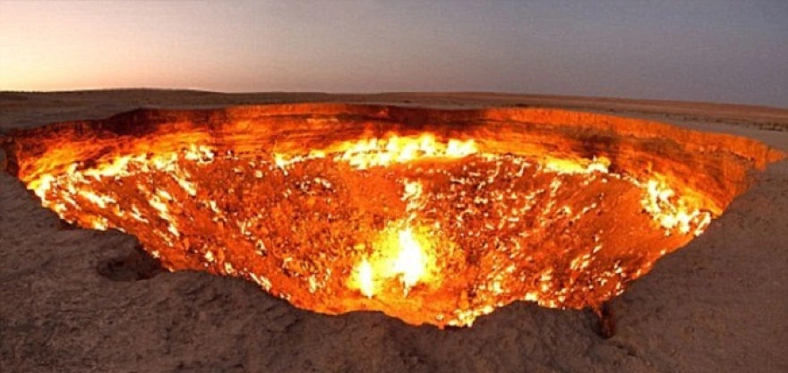 Sipas gjeologëve të vendit, ky është krateri i madh i gazit Darvaza që u formua në vitet 1960, por zjarri shpërtheu në vitet 1980.