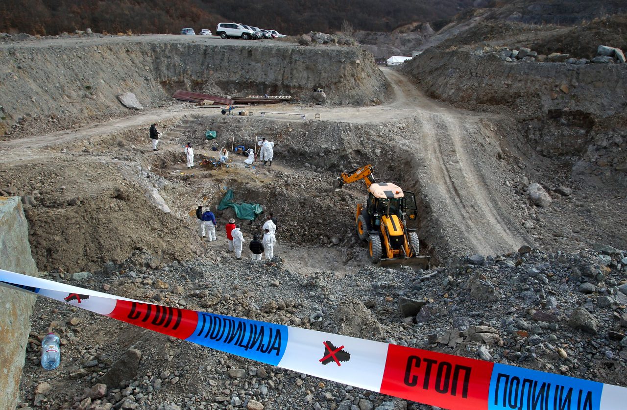Ekspertë mjeko-ligjor nga Serbia, Kosova dhe BE-ja duke kërkuar në zonën ku u gjet një varr masiv në fshatin Kizevak, pranë qytetit të Rashkës në veriperëndim të Serbisë në dhjetor 2020. Foto: EPA-EFE/Djordje Savic.