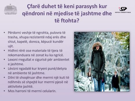 Përmes një postimi në rrjetet sociale, ISHP-ja ka dhënë disa këshilla për të gjithë në këto ditë acari, për të mbrojtur veten nga të ftohtët.