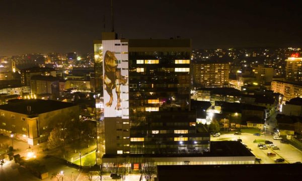 Një siluetë dinosauri shfaqet në ndërtesën e Qeverisë së Kosovës