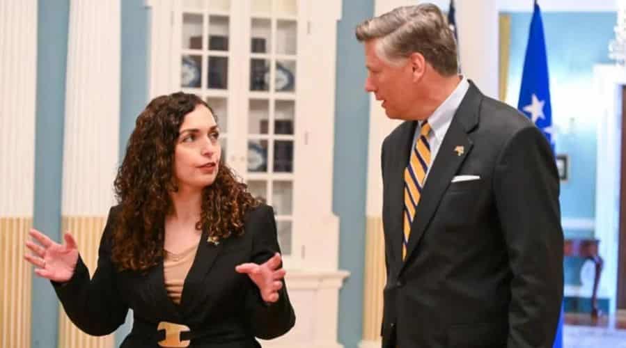 “Presidentja theksoi përkushtimin e Kosovës ndaj aleancës me Shtetet e Bashkuara të Amerikës dhe gatishmërinë për të vazhduar punën e ngushtë me Administratën e Presidentit Trump, siç është reflektuar përmes heqjes së tarifave për produktet amerikane, marrëveshjes për shtetasit e vendeve të treta, linjëzimit me politikën e jashtme amerikane, harmonizimit të plotë të listës së organizatave të huaja terroriste me urdhrat ekzekutivë të Presidentit Trump, si dhe përmes veprimeve të tjera që dëshmojnë mbështetjen e Kosovës për Administratën e Presidentit Trump. Në këtë takim, Presidentja ka ngritur çështjen e shkeljeve flagrante nga ana e Serbisë të të drejtave të shqiptarëve në Preshevë, Medvegjë e Bujanoc, duke kërkuar përkrahjen e Administratës Trump për këtë çështje”, thuhet në njoftim.