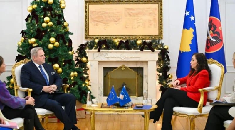 “Më tej, presidentja Osmani shtroi nevojën që kërkesa e Kosovës për anëtarësim në BE të procedohet sa më parë dhe që anëtarësimi të bëhet në bazë të meritave. Gjatë takimit, Presidentja prezantoi një sërë të dhënash të institucioneve ndërkombëtare që e pozicionojnë Kosovën në majat e performancës në shumë fusha kyçe”, thuhet në komunikatë.