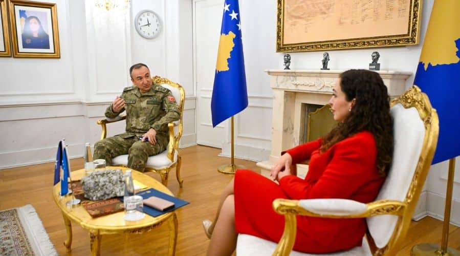 Presidentja e Republikës së Kosovës, Vjosa Osmani, të martën ka pritur në takim Gjeneralmajorin Ozkan Ulutaş, me rastin e rimarrjes së detyrës së Komandantit të misionit të NATO-s në Kosovë – KFOR.