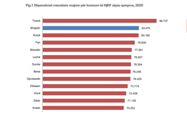 Vetëm Tirana ka konsum mbi mesataren