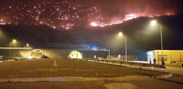 Pamjet e FRIKSHME të zjarrit të fuqishëm mbi tunelin e Kalimashit! U desh ndihma e forcave të Kosovës për ta vënë nën kontroll