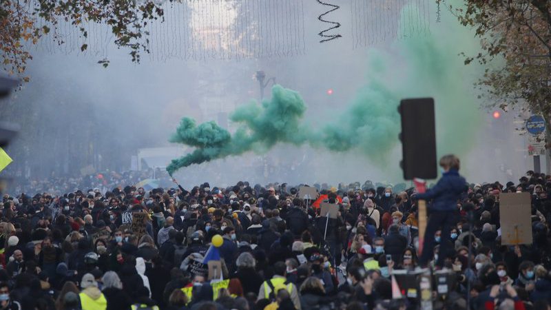 “Represion global, regresion total”, lexonte një pankartë e mbajtur lart nga një demonstrues në kryeqytet, një referencë ndaj projekt-ligjit të ri “të sigurisë globale” i cili ndalon botimin e imazheve që tregojnë fytyrat e oficerëve të policisë. Por qytetarët e kanë cilësuar këtë ligj si një cenim i drejtpërdrejtë të të drejtave të tyre, duke organizuar protestat më të dhunshme që pas atyre të jelekverdhëve.