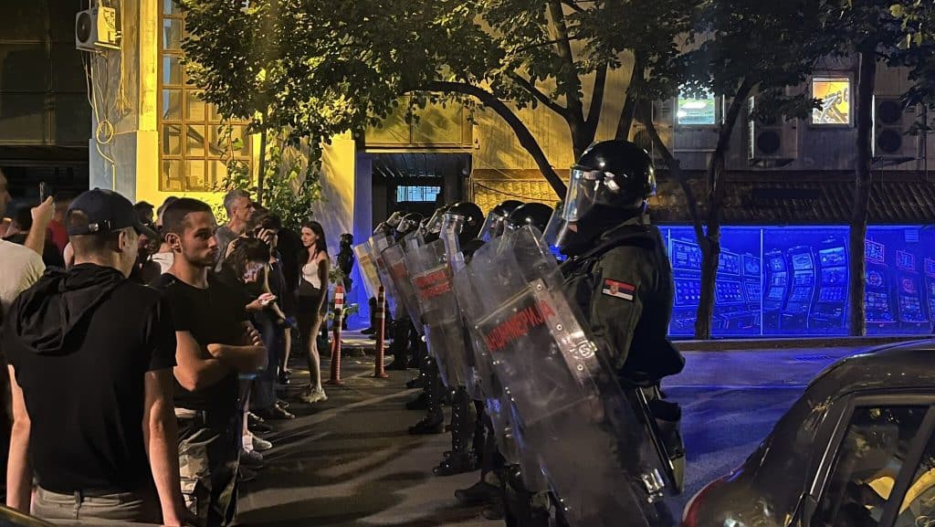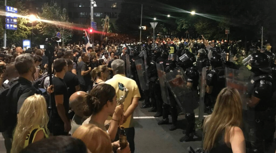 Në Beograd, përleshjet shpërthyen pranë zyrës së partisë në pushtet në rrugën Kneza Milosa, në qendër të qytetit, pranë kompleksit qeveritar dhe përpara tre zyrave të partisë SNS në lagjen Novi Beograd.