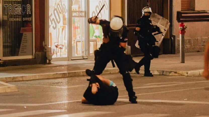 Ndërsa policia filloi të shtynte protestuesit nga zyra e SNS-it, një grup gazetarësh dhe qytetarësh që ndodheshin mes rreshtave u sulmuan nga aktivistët e SNS-it, të cilët i shanin dhe i kërcënonin, duke i ndjekur nëpër një nga rrugët aty pranë. Kjo shkaktoi panik, ndërsa njerëzit iknin për të gjetur strehim apo për të shpëtuar.