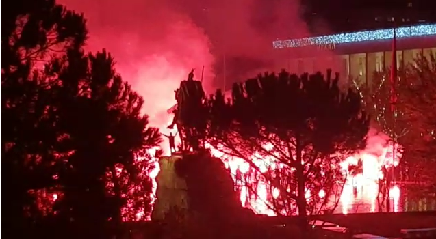 Grumbullimi i më shumë se 10 personave është i ndaluar me ligj në kuadër të kufizimeve për shkak të pandemisë. Por tifozët e Tiranës i kanë sfiduar hapur këto masa, madje në mes të kryeqytetit. Sic shihet në videon që sjell Lapsi.al ata janë grumbulluar në Sheshin “Skënderbej” duke brohoritur e ndezur flakadanë. Ashtu në turmë sic ishin ata janë bërë gati për ndeshjen e sotme. Sot në Shqipëri ka qenë një tjetër ditë me bilanc të frikshëm, ku u regjistruan 801 raste të reja me Covid dhe 18 jetë të humbura./lapsi.al/