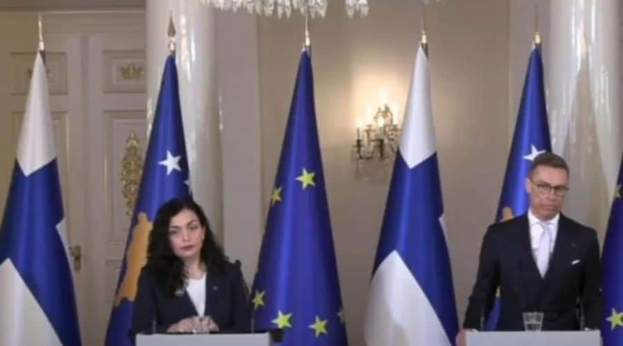 Presidentja e Republikës së Kosovës, Vjosa Osmani, gjatë vizitës së saj zyrtare në Finlandë, ka mbajtur një konferencë të përbashkët për media me presidentin finlandez, Alexander Stubb, ku shprehu mirënjohje të thellë për përkrahjen historike dhe të vazhdueshme të këtij vendi ndaj Kosovës.
