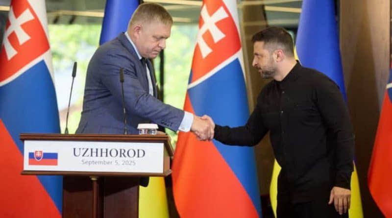 Kryeministri i Sllovakisë, Robert Fico, ka bërë një kthesë të papritur në qëndrimin e tij ndaj Ukrainës, gjatë takimit me presidentin Volodymyr Zelensky më 5 shtator në Uzhhorod. “Marrëdhëniet e Sllovakisë dhe Ukrainës janë të dënuara të përmirësohen… miqësi, fqinjësi e mirë, paqe e drejtë, sa më shpejt armëpushim dhe perspektivë evropiane – këto janë katër shtyllat që duhet të udhëheqin marrëdhëniet tona,” deklaroi ai.