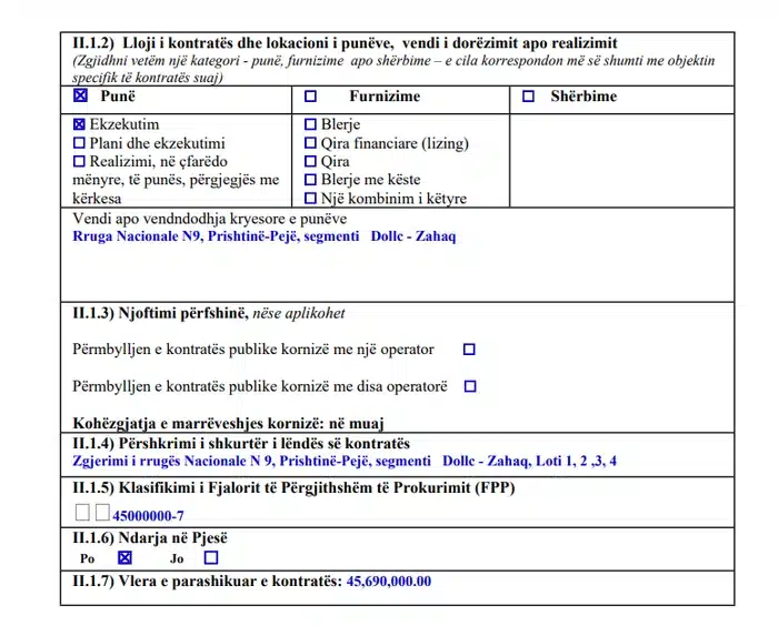 Sipas dokumenteve të publikuara nga Ministria, kontrata është dhënë më 22 tetor 2025, ndërsa nënshkrimi i saj është planifikuar të bëhet më 23 tetor 2025. Vlera e përgjithshme e parashikuar e kontratës arrin në 45 milionë e 690 mijë euro.