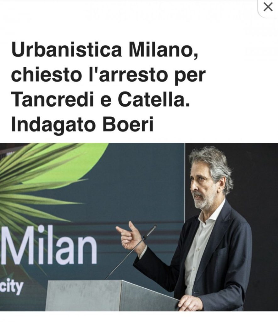 Guadia di Finanza e Milanos me urdhër të Prokurorisë së Milanos ka ekzekutuar sot 6 masa ndalimi, në burg e arrest shtëpiak, ka kryer 24 kontrolle dhe në zyrat institucionale të Bashkisë së Milanos si dhe ka vënë nën hetim disa persona mes të cilëve dhe arkitektin Stefano Boeri.