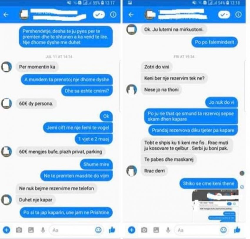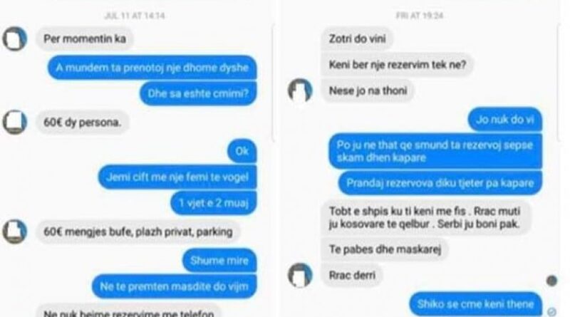 Një përvojë të tillë ka ndarë një shqiptar nga Prishtina, i cili u fye me fjalë të rënda nga pronari apo përfaqësuesi në rrjete sociale i një hoteli në Shqipëri.