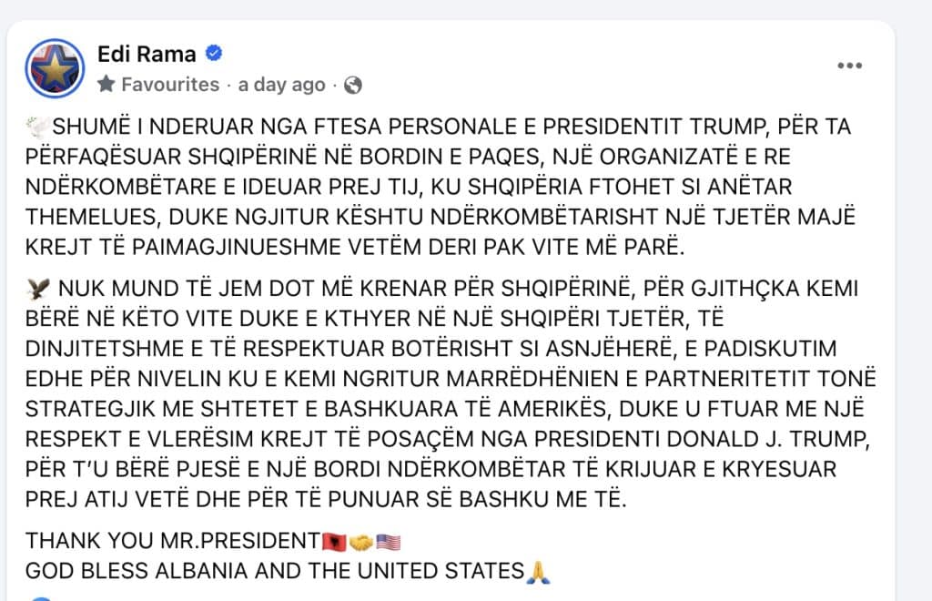 Prandaj letra e Trump për Ramën ishte një fije bari e mirë për t’u kapur.