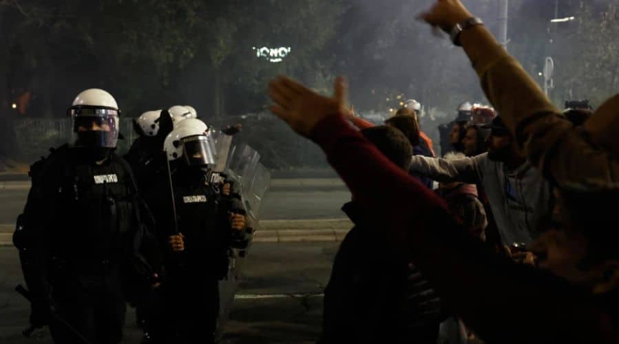 Turmat në qendër të qytetit të Beogradit u përleshën shkurtimisht me policinë, e cila përdori shkopinj gome për të shpërndarë demonstruesit që brohorisnin “qen” dhe “tradhtarë”, sipas një dëshmitari të Reuters.