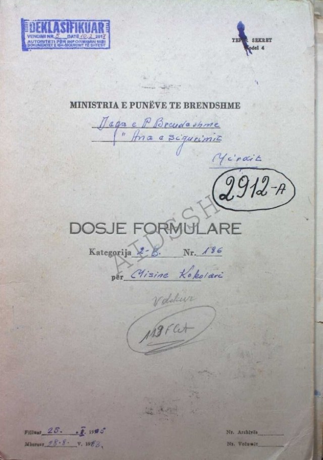 Autoriteti për Informim mbi Dokumentet e ish-Sigurimit të Shtetit publikoi dosjen e Musine Kokalarit për studiuesit.