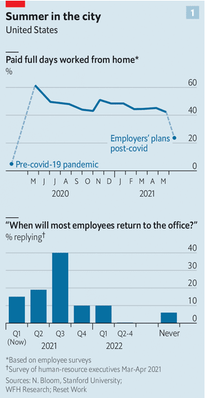 E gjithë kjo sugjeron që rregullimet hibride do të vazhdojnë në shumicën e vendeve (me përjashtim të mundshëm të Ëall Street). Sidoqoftë, ato paraqesin sfidat e tyre. Ato zbehin kufijtë midis punës dhe jetës familjare. Takimet virtuale mund të jenë edhe më të lodhshme se ato personale. Dhe oraret hibride e bëjnë menaxhimin e hapësirës për zyra të ndërlikuar, veçanërisht në një kohë kur shumë kompani, përfshirë Hsbc, po planifikojnë të ulin numrin e zyrave.