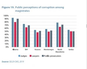 Në Shqipëri është perceptimi më i lartë publik se gjykatësit, juristët dhe prokurorët publikë janë të korruptuar./MONITOR