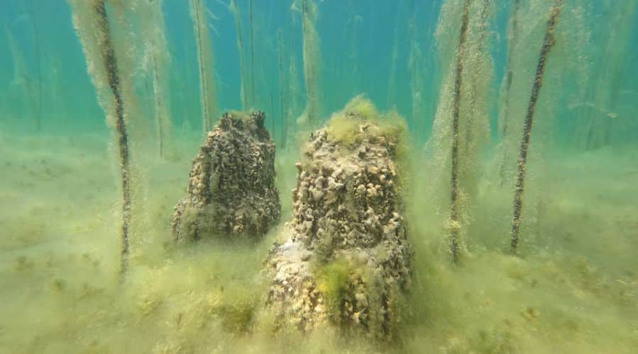 Ekipi, nga Zvicra dhe Shqipëria, kalon orë të tëra çdo ditë rreth tre metra nën ujë, duke rikuperuar me shumë mundim, shtyllat prej druri që mbanin shtëpitë.