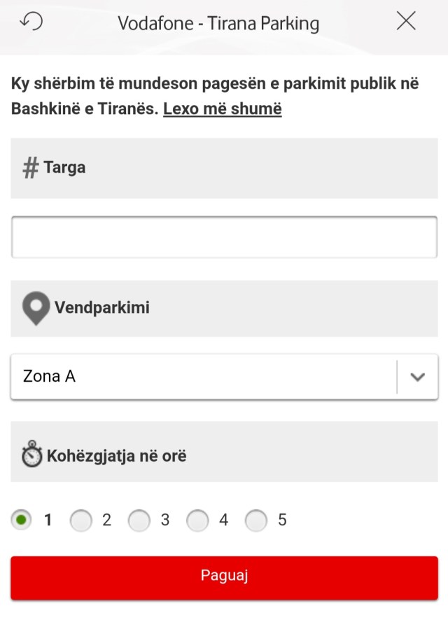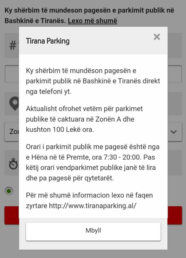 “Orari i parkimit publik me pagesë është nga e hëna në të premte 7:30-20:00. Pas këtij orari vendparkimet publike janë të lira dhe pa pagesë për qytetarët. Për më shumë informacion lexo në faqen zyrtare në www.tiranaparking.al” thuhet në aplikacionin e Vodafone. Pra, pa shumë shpjegime të mëtejshme për abonentët e saj.