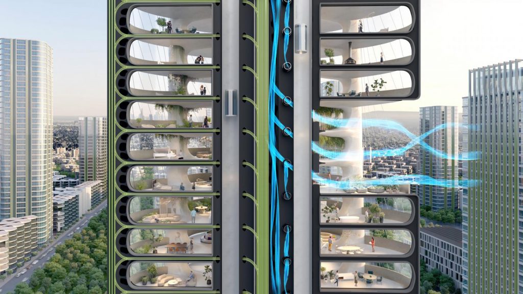 Megjithatë, nëse është i suksesshëm, projekti ‘Urban Sequoia’ mund ta zvogëlojë atë përqindje edhe pas ndërtimit. Sekreti qëndron në dizajnin që rezulton nga integrimi i zgjidhjeve të mëparshme në ndërtimin “e gjelbër”, duke përfshirë minimizimin e përdorimit të materialeve, teknologjinë e kapjes së karbonit, përdorimin e biomaterialeve dhe optimizimin e dizajnit.