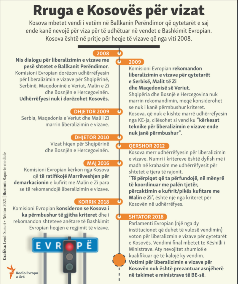 Radio Evropa e Lirë ka publikuar një infografikë që tregon rrugën e Kosovës në këtë drejtim që nga viti 2008.