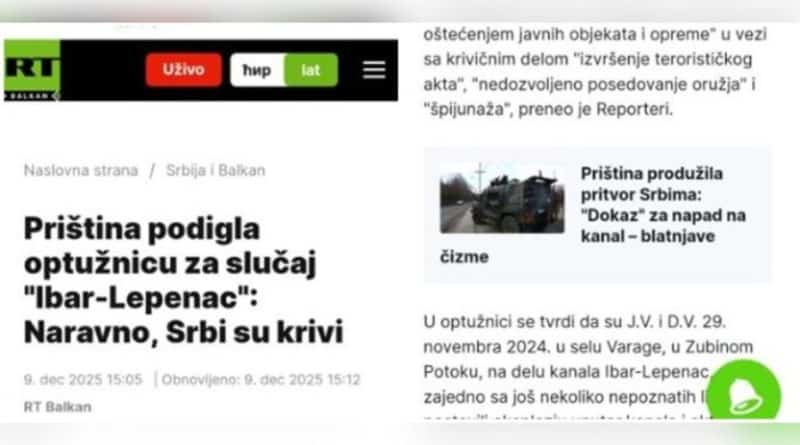 Në artikullin e saj, RT Serbia hapet me deklaratën ironizuese se “sigurisht, fajin e kanë serbët”, duke e portretizuar aktakuzën si një përpjekje të autoriteteve të Kosovës për t’i atribuuar përgjegjësinë Beogradit pa prova.