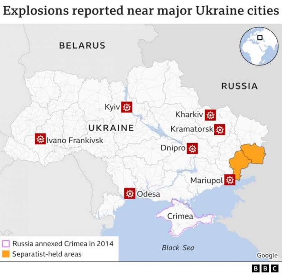 Ukraina ka thënë se automjetet e ushtrisë së Rusisë kanë hyrë në vend nga disa lokacione, duke përfshirë edhe nga veriu i Bjellorusisë dhe jugu i Krimesë.
