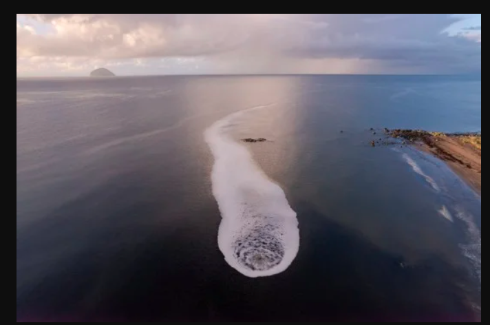 46-vjeçari Paul Young, po filmonte me dronin e tij gjatë ditës së diel dhe në pamjet dallgët e shkumuara formonin një shtjellë të shoqëruar nga një vazhdë.