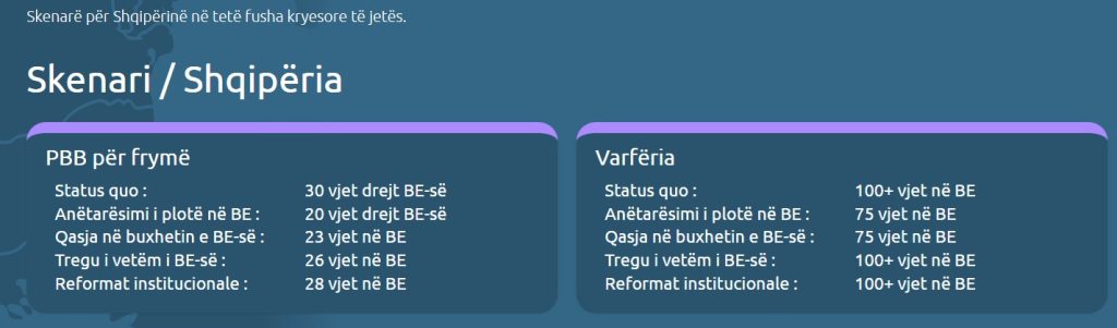 Të dhënat sugjerojnë se, në skenarin më optimist, Shqipërisë mund t’i duhen rreth tri dekada për të arritur mesataren e PBB-së për frymë të BE-së. Megjithatë, lufta kundër varfërisë duket se i përket një shekulli tjetër, pasi kërkon më shumë se 100 vite. Kjo tregon se rritja e të ardhurave për frymë nuk po përkthehet në një jetë më të mirë për shtresat më të varfra të popullsisë.
