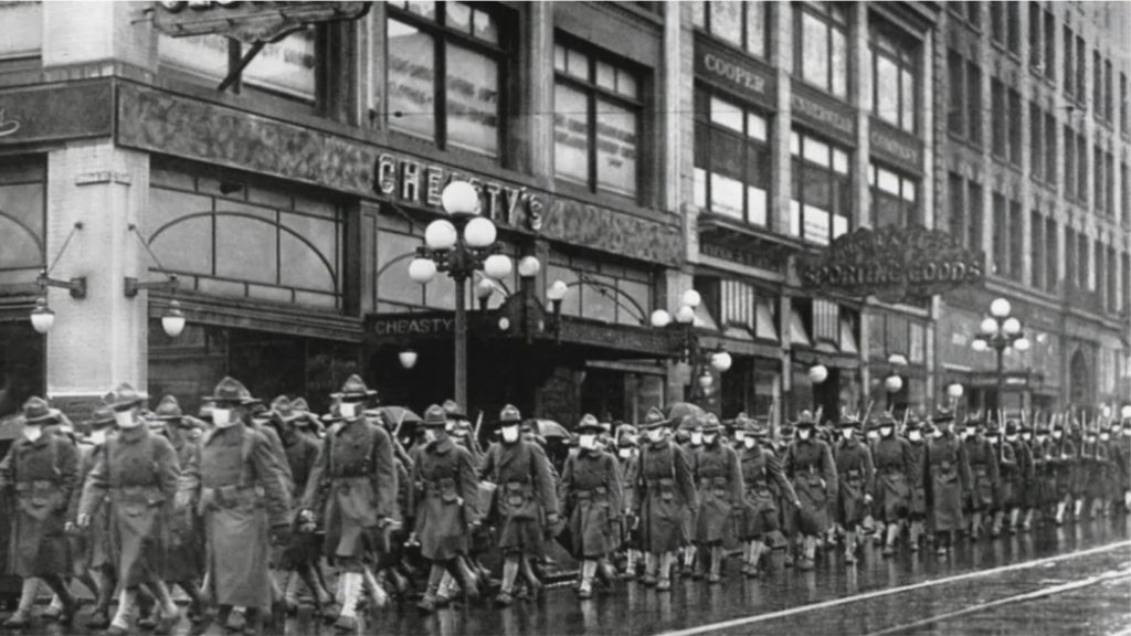 Një artikull i botuar në faqen e internetit të “Smithsonian” rindërton pamjen historike të kohës. Në vitin 1918, indikacionet shëndetësore nuk i përkisnin qeverisë federale (Qendrat për Kontrollin dhe Parandalimin e Sëmundjeve ose CDC në 1946), por komunave individuale. Disa qytete si San Francisko, kishin menaxhuar në mënyrë efektive valën e parë, duke bërë të detyrueshme maskat dhe distancimin dhe duke vendosur një bllokim në mes të tetorit 1918. Masat kishin funksionuar, por rihapja në fund të nëntorit, kishte ndodhur shumë shpejt. Në mes të dhjetorit, rastet ishin në rritje përsëri dhe qytetarët tani ishin intolerantë ndaj kufizimeve të reja.