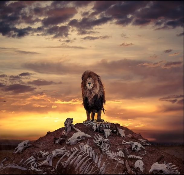Ai ka mundur që të fiksojë në syrin e kameras momentin madhështor kur një luan mashkull qëndron me krenari në majë të një kodre mbushur me eshtra kufomash, ndërsa shikimin e ka drejt qiellit.