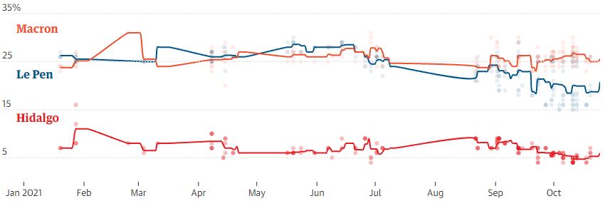 Bashkë më to, në fletën e votimit do jenë dhe Anne Hidalgo, kandidatja Socialiste, Yannick Jadot, përfaqësues i lëvizjes së Gjelbër dhe një kandidat nga qendra e djathtë, që pritet të zgjidhet nga Republikanët me 4 dhjetor. Eksperti i televizionit Eric Zemmour, një ekstremist i djathtë, i cili nuk i përket një partie, mund të deklarojë kandidaturen si i pavarur.