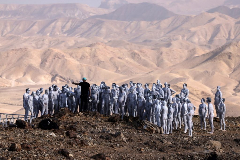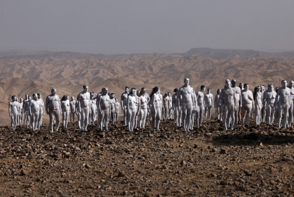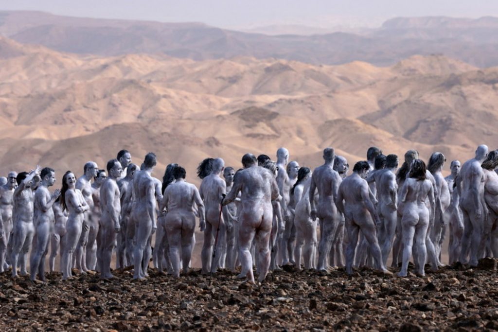 Fotografi amerikan Spencer Tunick, i famshëm për instalacionet e tij të përbëra nga qindra trupa të zhveshur, ka mbledhur 200 njerëz në Detin e Vdekur, pranë qytetit izraelit të Arad.