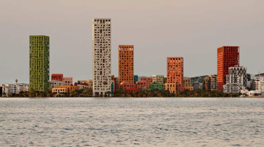 “Tre kulla, të vendosura brenda strukturës së blloqeve, ngrihen mbi përmasën modeste të lagjes. Pozicionimi i tyre ruan korridoret pamore dhe hapësirat e hapura, ndërsa fasadat e tyre ndjekin të njëjtin gjuhë dizajni për të mbajtur koherencën arkitekturore.” – njofton Oppenheim Architecture, ndërsa zbulon se klienti për këtë projekt të përmasave gjigante është kompania Feniks Konstruksion Sh.P.K.