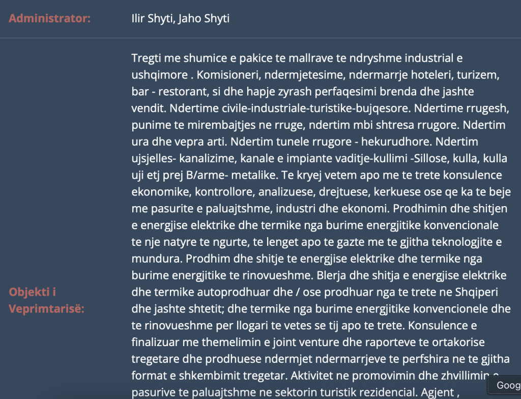 Përshkrimi i kompanisë tregon se ajo merret me disa biznese.