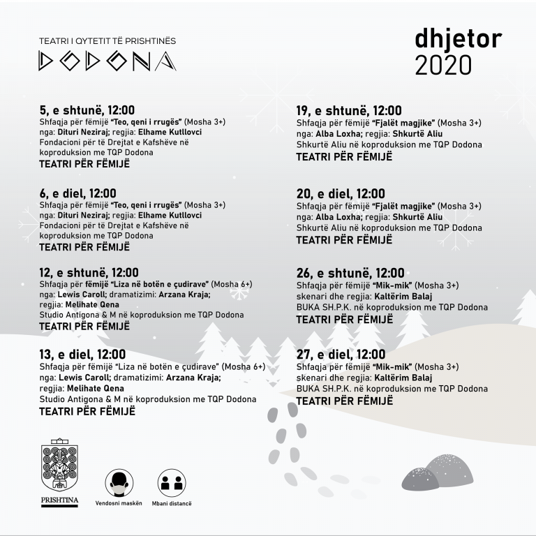 Teatri i Qytetit të Prishtinës, “Dodona” ka publikuar sot programin e shfaqjeve për muajin dhjetor 2020, në skenën e fëmijëve.
