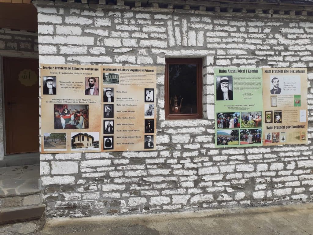 Teqeja u ndërtua më 1781 nga Sulejman Beu i Frashërit dhe në 1908 u hap shkolla e parë shqipe nga baba Alushi në të cilën u mësua gjuha shqipe.