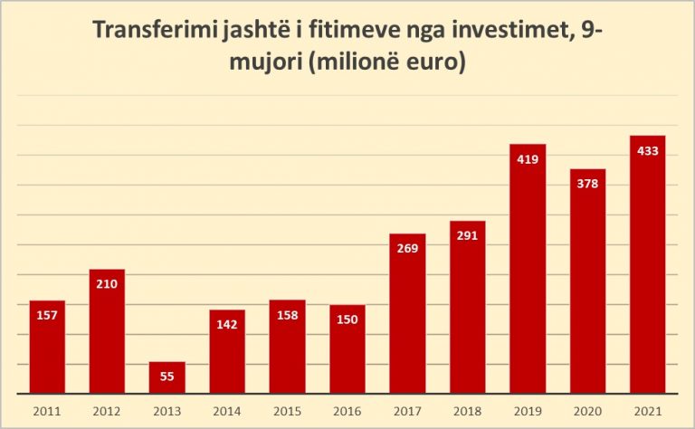 Transferimi i fitimeve jashtë vendit në vitin 2021, në nivelet më të larta historike