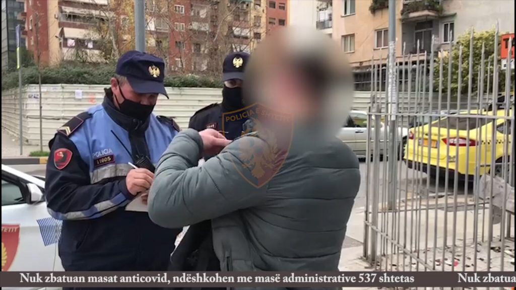 523 qytetarë u konstatuan pa vendosur maskat mbrojtëse dhe u ndëshkuan me nga 3 mijë lekë. Sipas njoftimit të Policisë së Tiranës, gjatë kontrolleve është evidentuar dhe ndëshkuar me masë administrative 1.000.000 lekë, një subjekt që ushtronte aktivitetin duke mos respektuar protokollet e sigurisë.