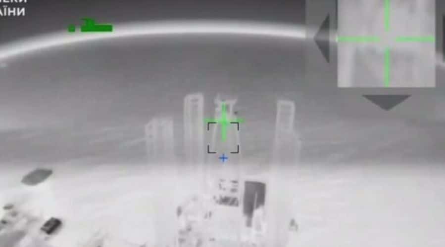 Pamjet e filmuara nga ajri me dron, tregojnë momentin kur droni në ajër e godet fillimisht radarin dhe për ta përfunduar plotësisht punën – aktivizohet edhe një dron detar.