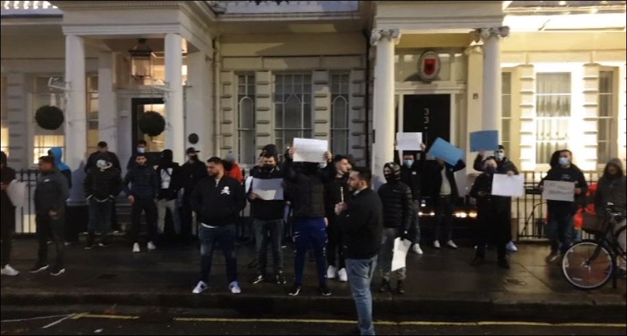 Ndërsa Tirana bëhet gati për ditën e pestë të protestës pas vrasjes së Klodian Rashës, një grup shqiptarësh janë mbledhur në ambasadën tonë në Londër.