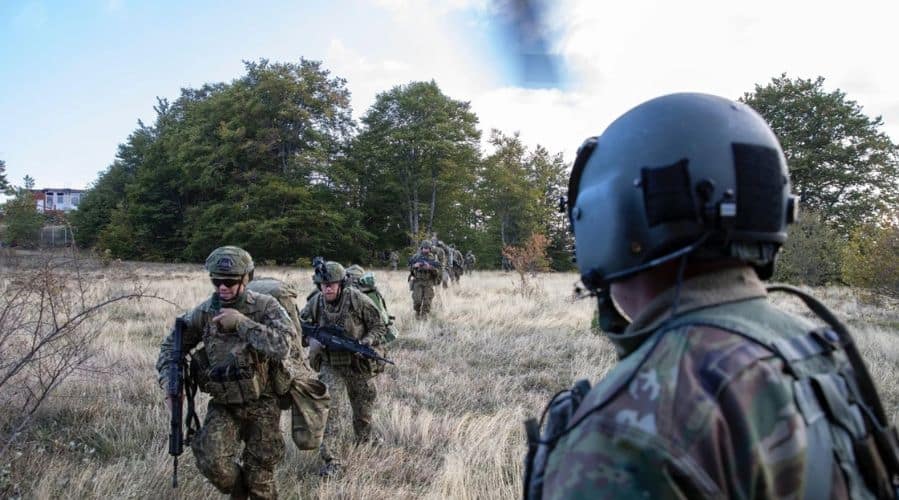 Ushtarë amerikanë, letonezë, polakë, turq dhe gjermanë nga batalioni i manovrimit të Komandës Rajonale-Lindje i misionit KFOR të udhëhequr nga NATO kryejnë ushtrime të futjes ajrore mbi veriun e Kosovës.