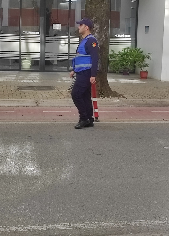 Mësohet se polici e ka ndaluar makinën në rrugë dhe në momentin që ka hapur derën e shoferit ka përplasur qytetarin që po ecte me mjetin motorrik.