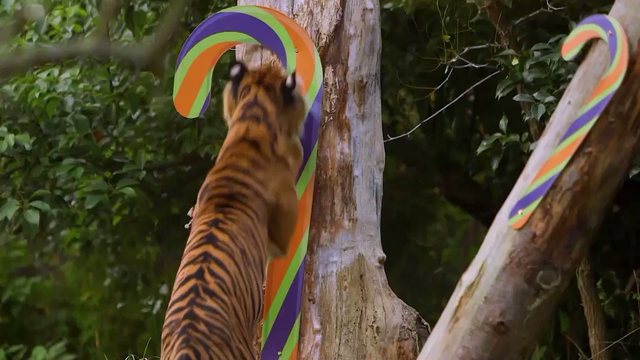 Video/ Tigrat në kopshtin zoologjik luajnë me zbukurimet e Krishtlindjes