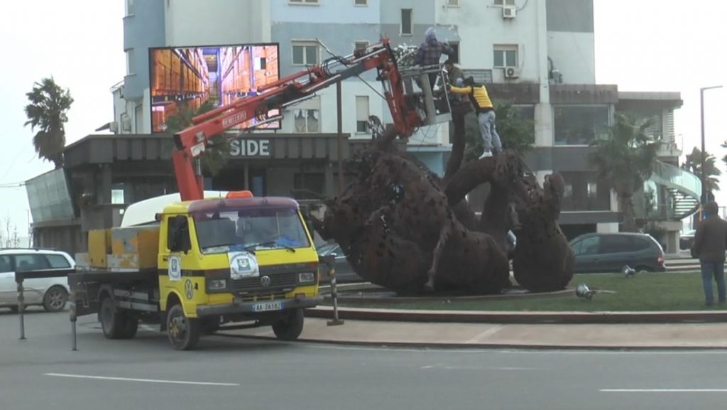 Vijon era e fortë në Durrës, rrëzohet statuja e Redonit