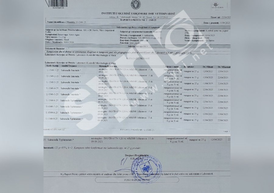 Ditët e fundit dy kompani shqiptare që merren me tregtimin e mishit nga importi kanë futur disa ngarkesa të cilat pasi janë marrë monstrat kanë rezultuar me salmonelë nga ISUV, i cili është dhe laboratori i çertifikuar ndërkombëtarisht për analiza të tilla.